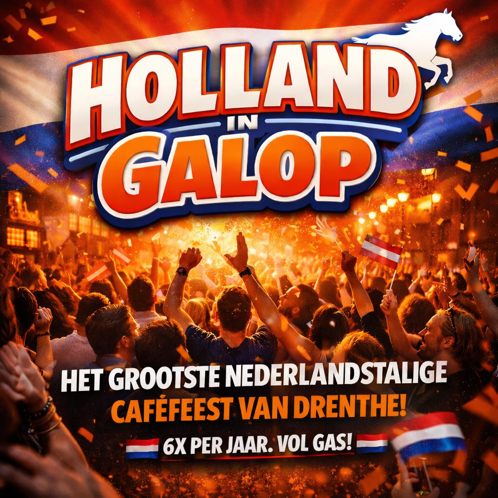 Holland in Galop is één doorlopend kroegfeest: volop meezingers, herkenbare Nederlandse hits en een ongedwongen sfeer waarin de avond vanzelf loskomt.